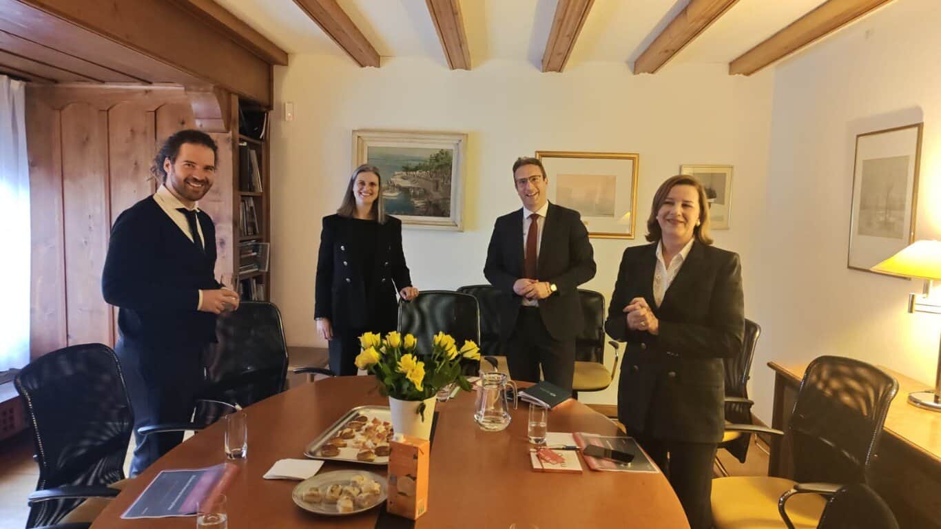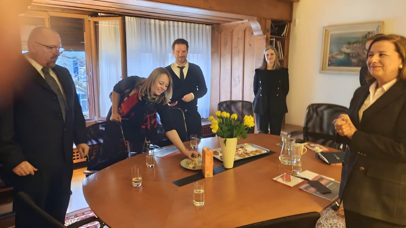 U ime Veleposlanstva delegaciju je primila dr. sc. Andrea Bekić, izvanredna i opunomoćena veleposlanica Republike Hrvatske u Švicarskoj Konfederaciji i Kneževini Lihtenštajn, uz prisutnost Saše Čvrljka, savjetnika, te Jelene Biljan, ministrice savjetnice.